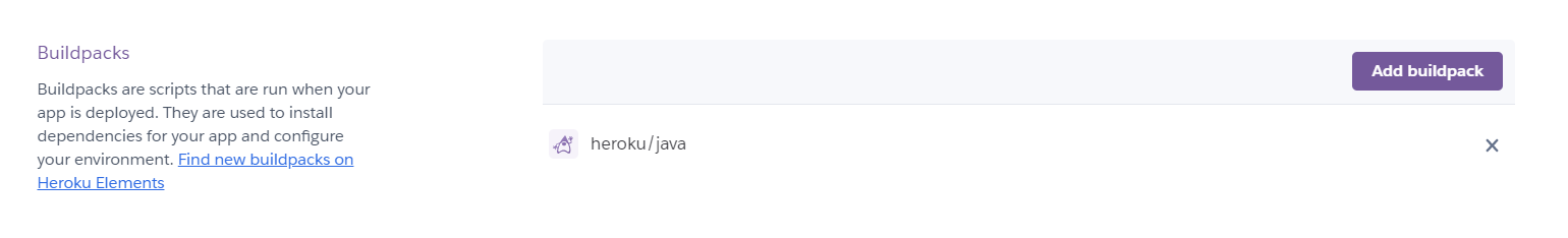 Buildpacks가 보인다. 여기서 Add buildpack을 눌러 명령어 없이 간편하게 빌드팩을 설정할 수 있다.